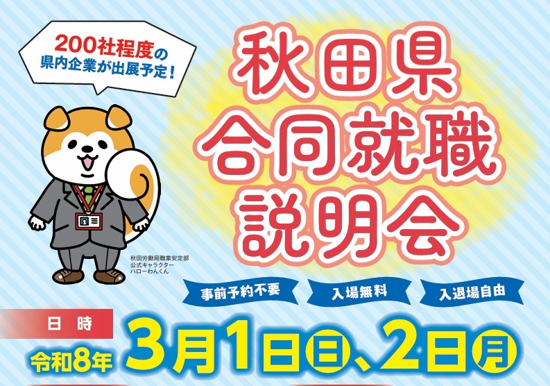 2026年3月2日(月)ANAクラウンプラザホテル秋田にて開催予定の「秋田県合同就職説明会」に、当社が出展します。
